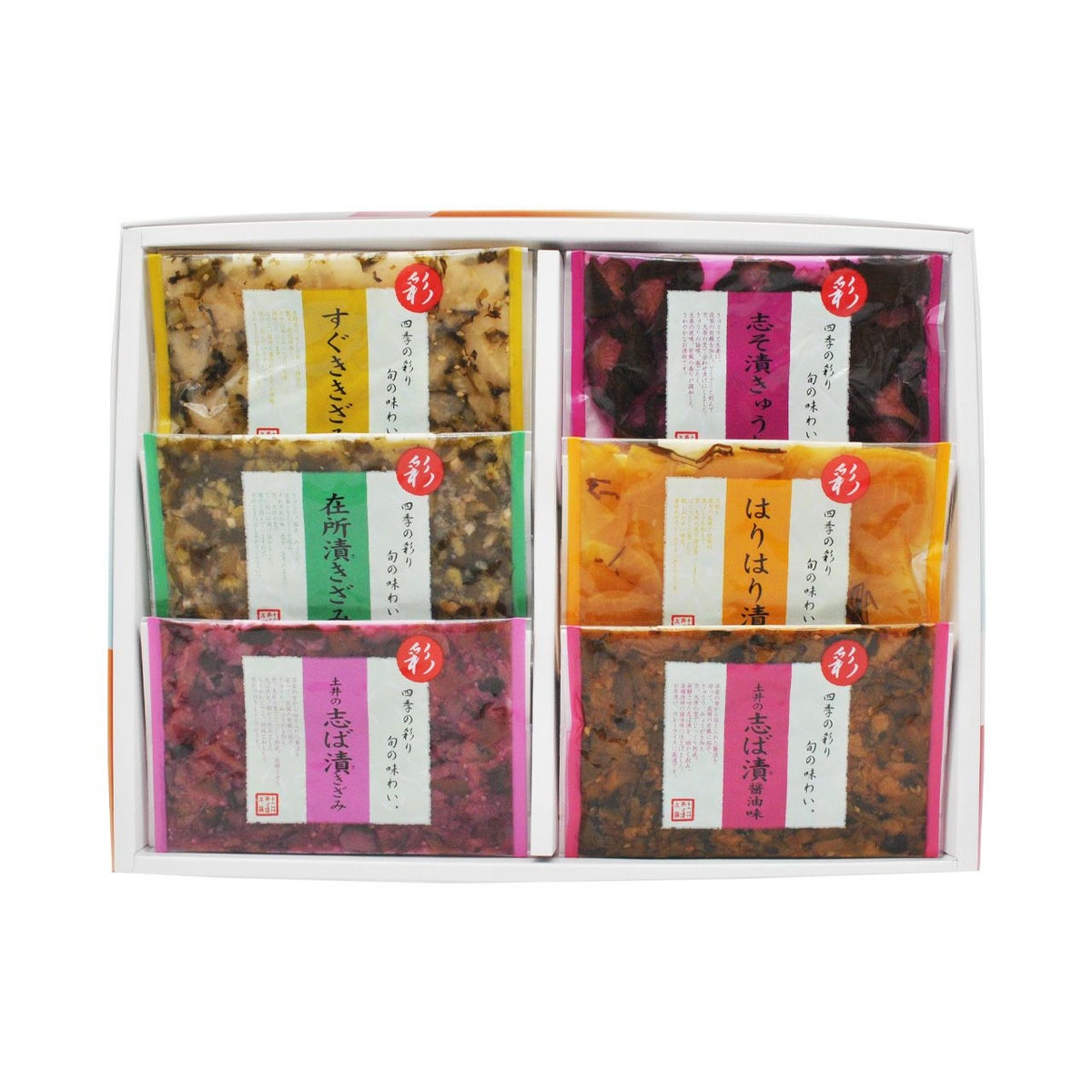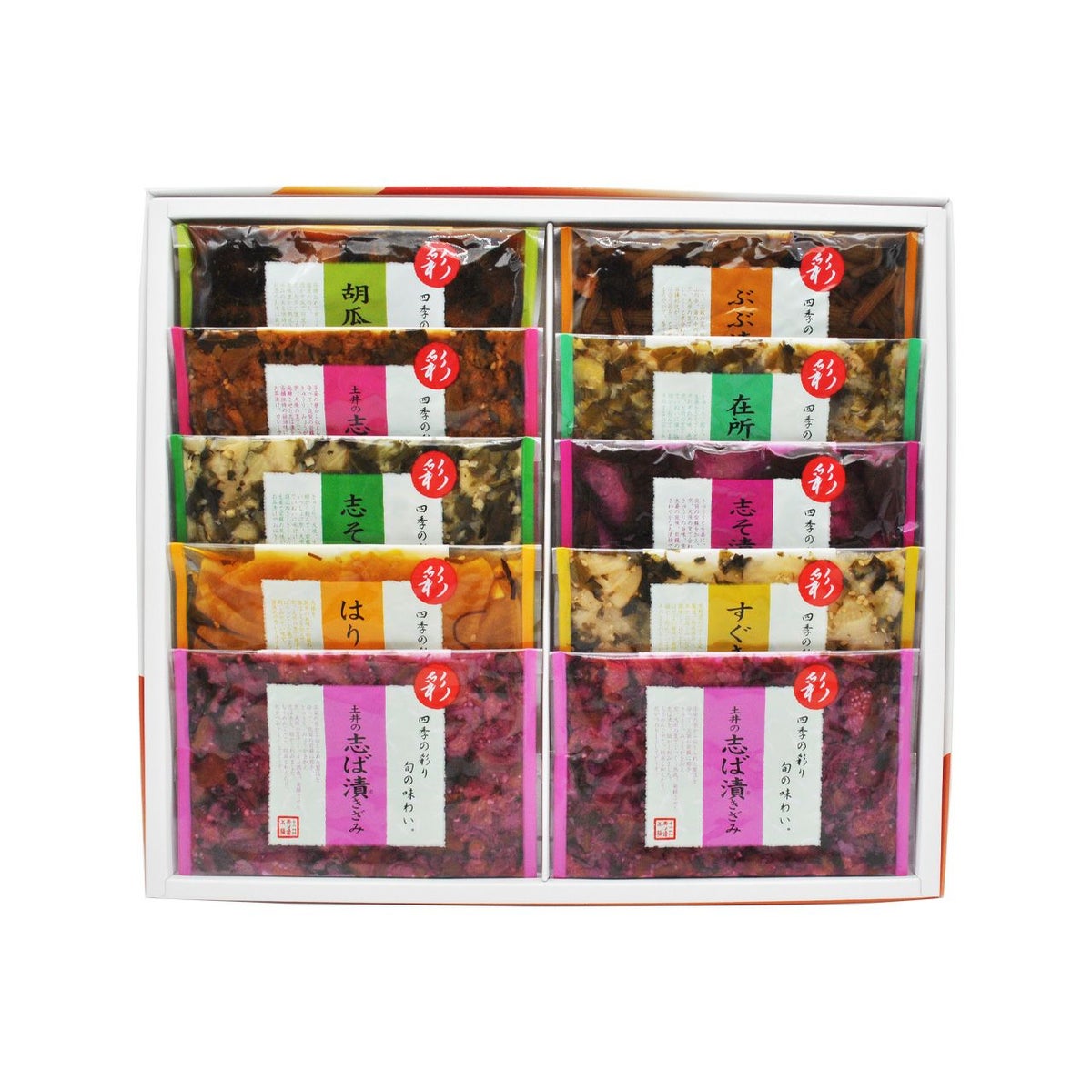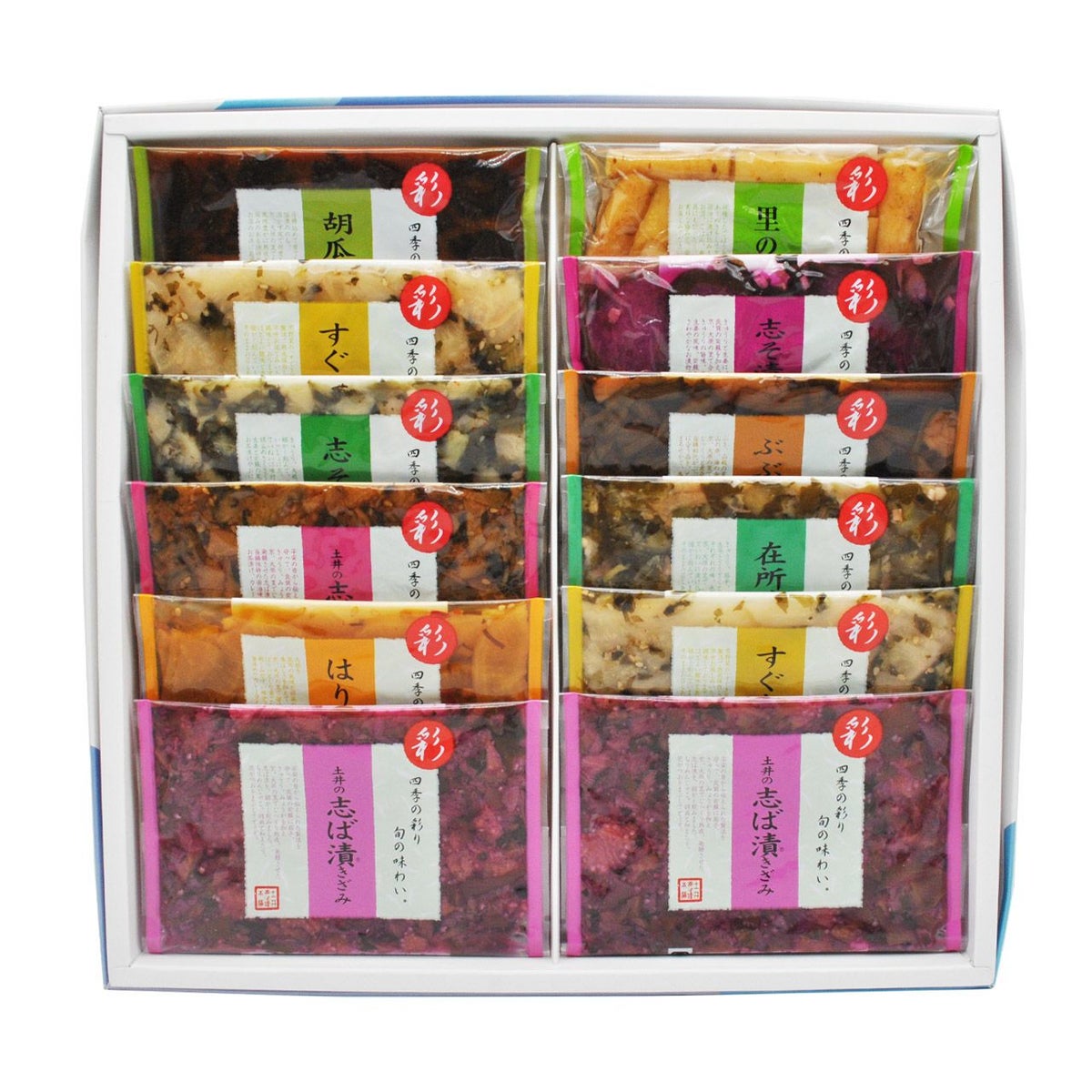 土井の志ば漬をはじめ、いろとりどりな京つけものを詰め合わせました。 手土産や贈り物に、お漬物はいかがでしょうか。