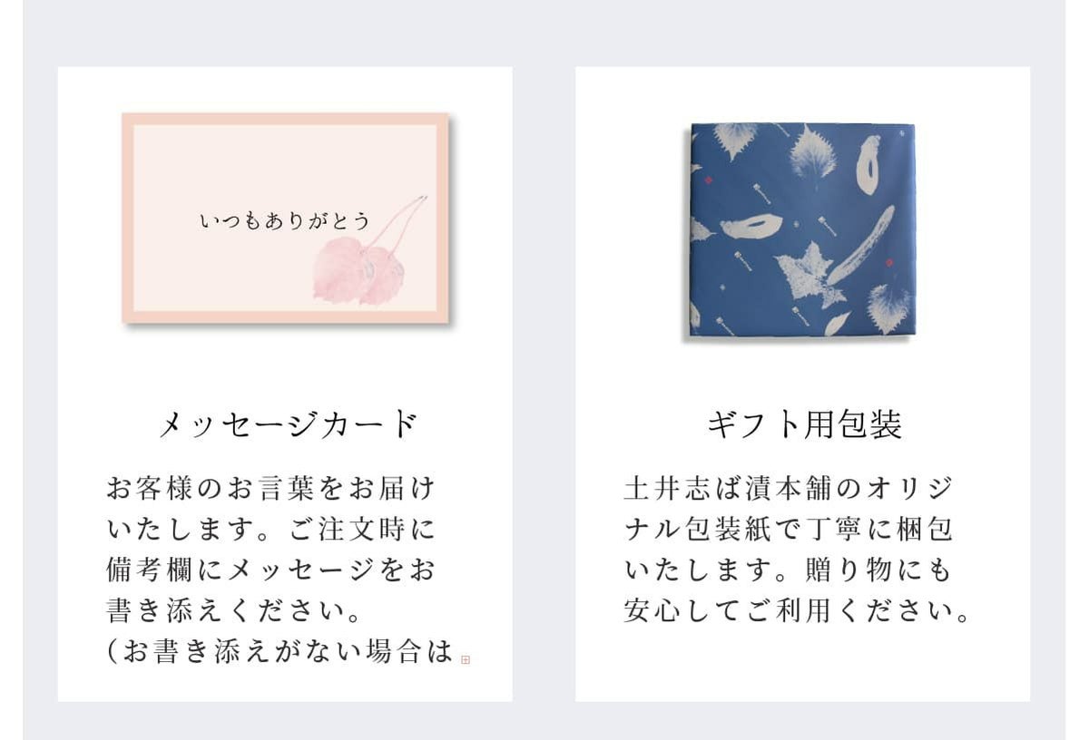 風味豊かな京つけものを多彩に詰め合わせた、豪華なセットです。 大切な方への贈り物にも最適です。土井の伝統の味を、たっぷりお楽しみください。