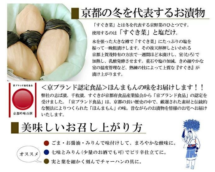 ※すぐきはグラム数により本数が写真と異なる場合がございますこと予めご了承くださいませ。