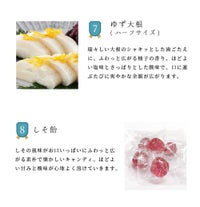 | 原材料名 | 砂糖、水飴、紫蘇、酸味料、香料、コーン色素、クチナシ色素、ベニバナ色素、野菜色素 |