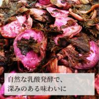 京の伝統野菜・賀茂茄子を、きゅうり、みょうがと一緒に漬け込みました。伝統の乳酸発酵による深い味わいと、ほどよい酸味が賀茂茄子の歯ごたえを引き立てます。