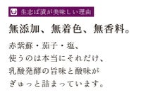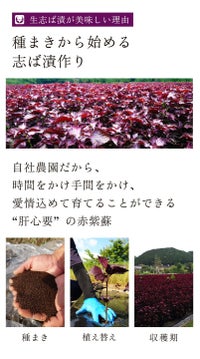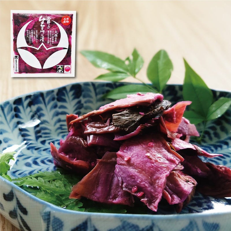 京都大原で育った香り高いちりめん赤紫蘇と、国産の新鮮な茄子を赤穂塩だけで丁寧に漬け込み、じっくり自然乳酸発酵させました。昔ながらの製法で、手間ひまかけて仕上げた、当店ならではの、昔ながらの生志ば漬。