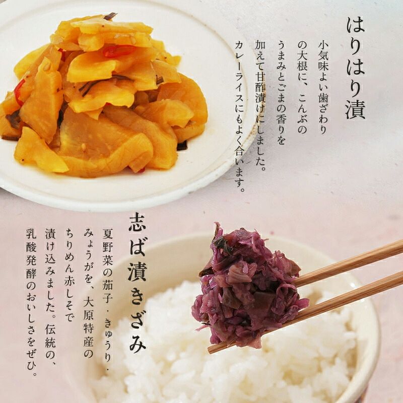 京都大原で育った香り高いちりめん赤紫蘇と、国産の新鮮な茄子を赤穂塩だけで丁寧に漬け込み、じっくり自然乳酸発酵させました。