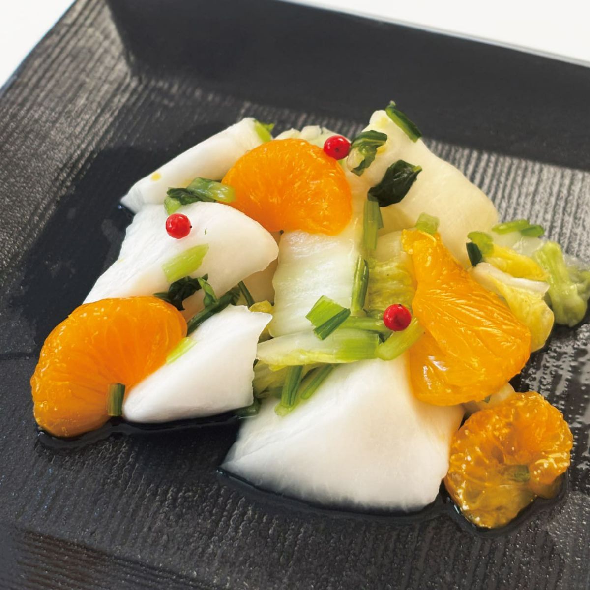 季節限定「冬いろいろ」 かぶら、白菜、壬生菜にみかん。冬の旬の味を1つのお漬物にして。