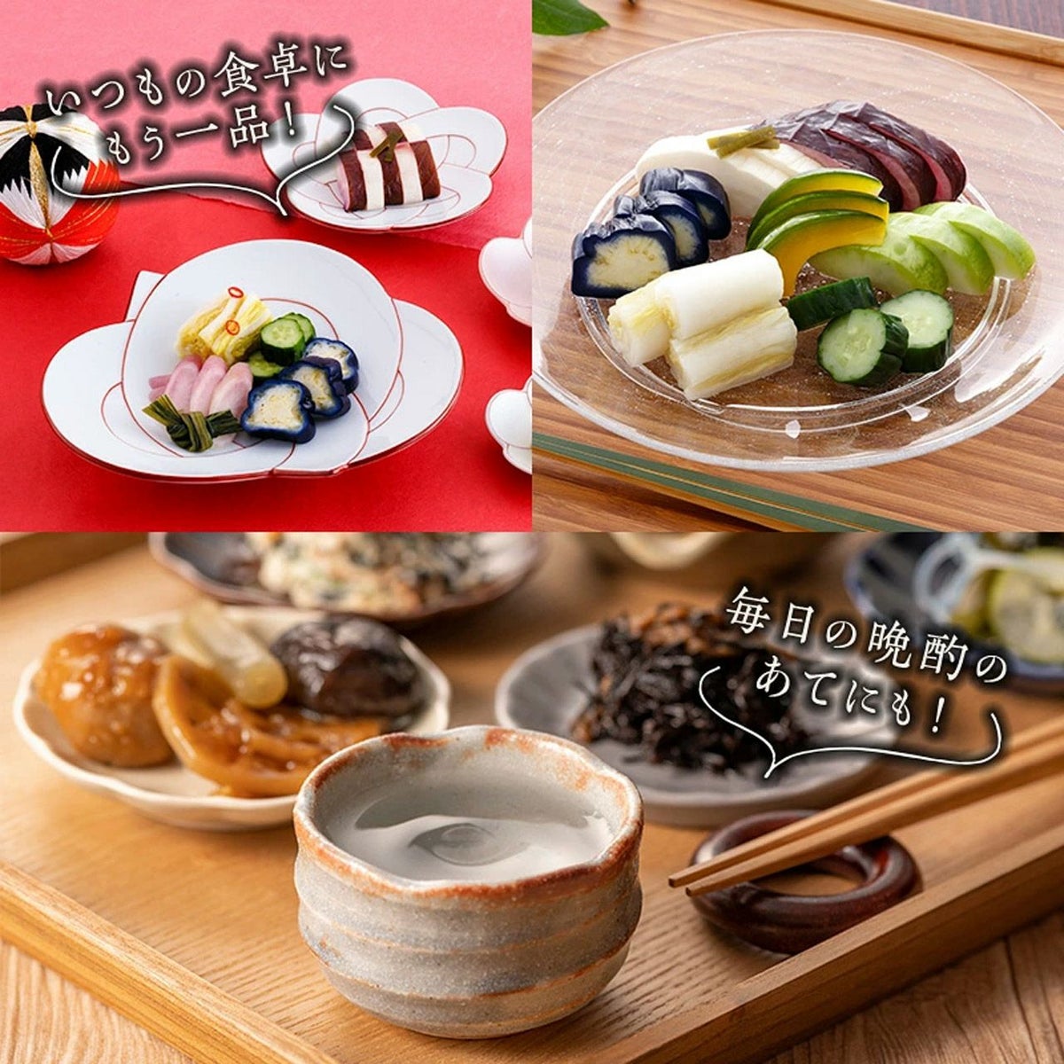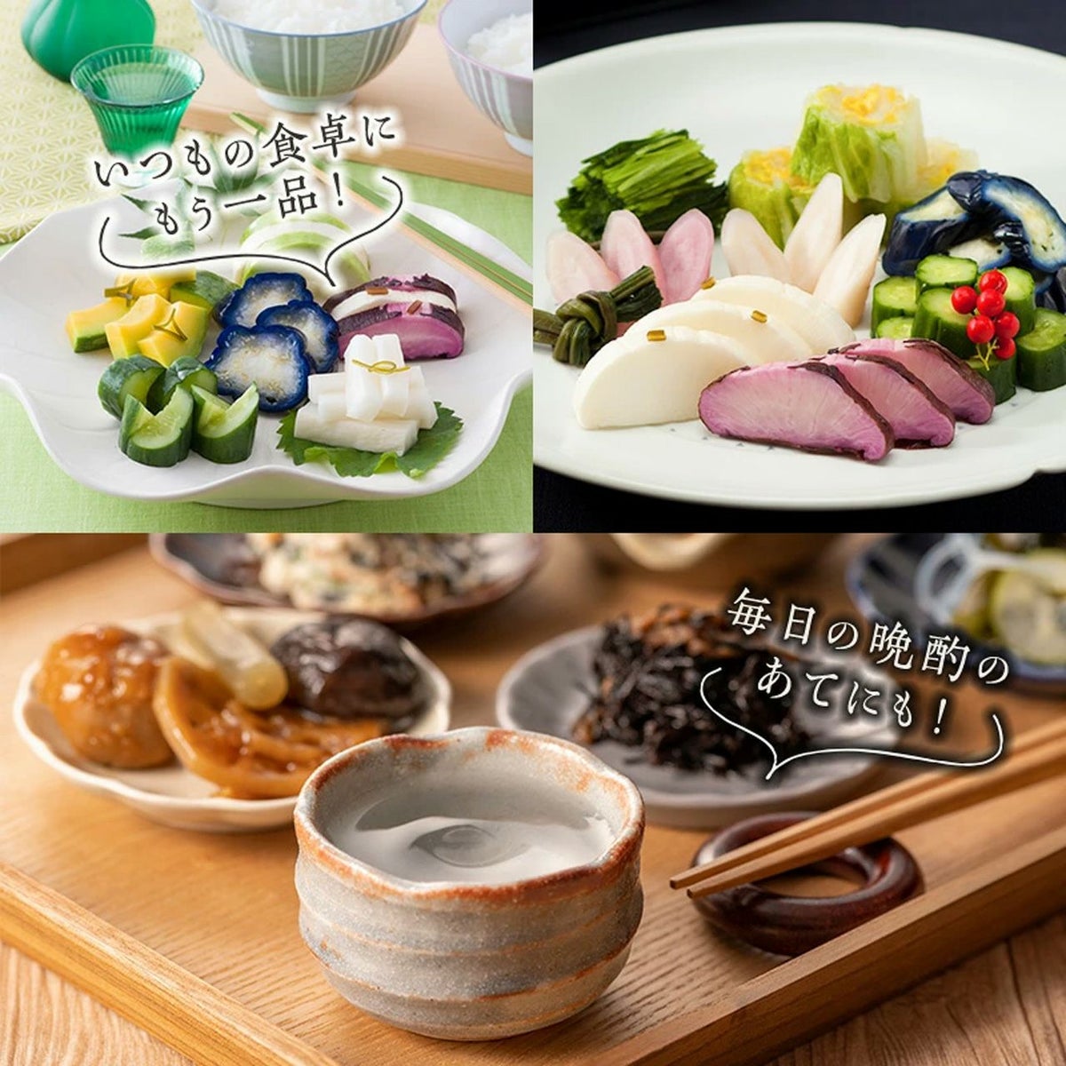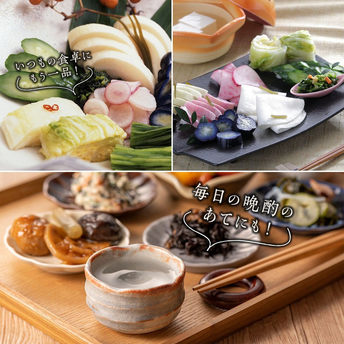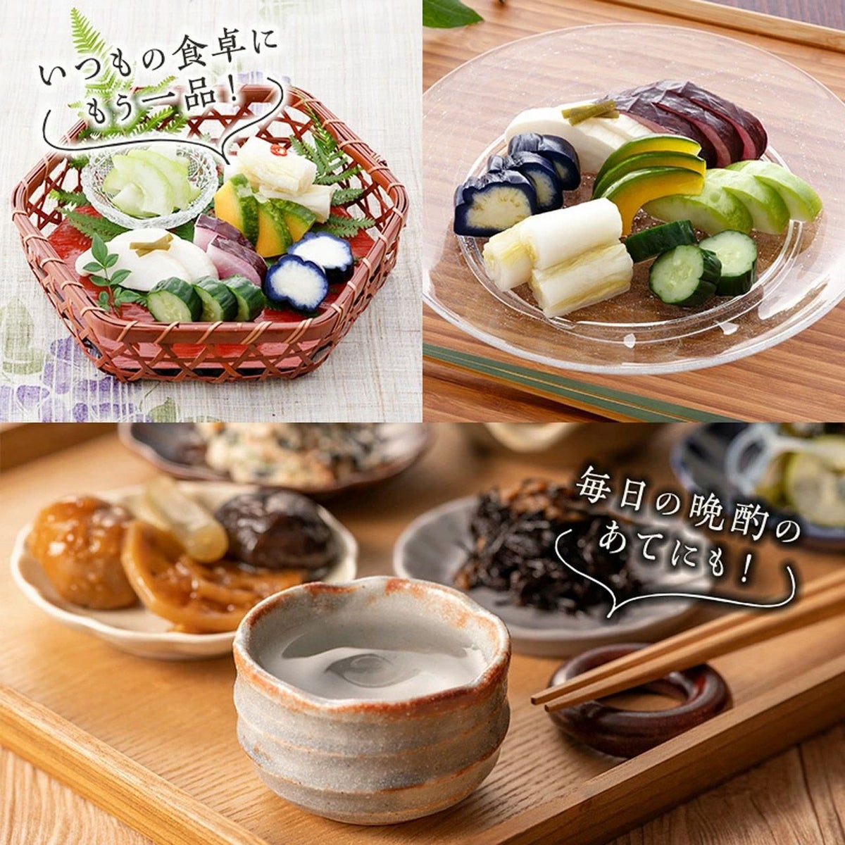 きゅうり・茄子・みょうが・生姜をあわせて漬けました。素材それぞれの風味が調和して、おいしさが一層引立ちます。お好みで、一口大に切ったり、細かく刻んでお召し上がりください。