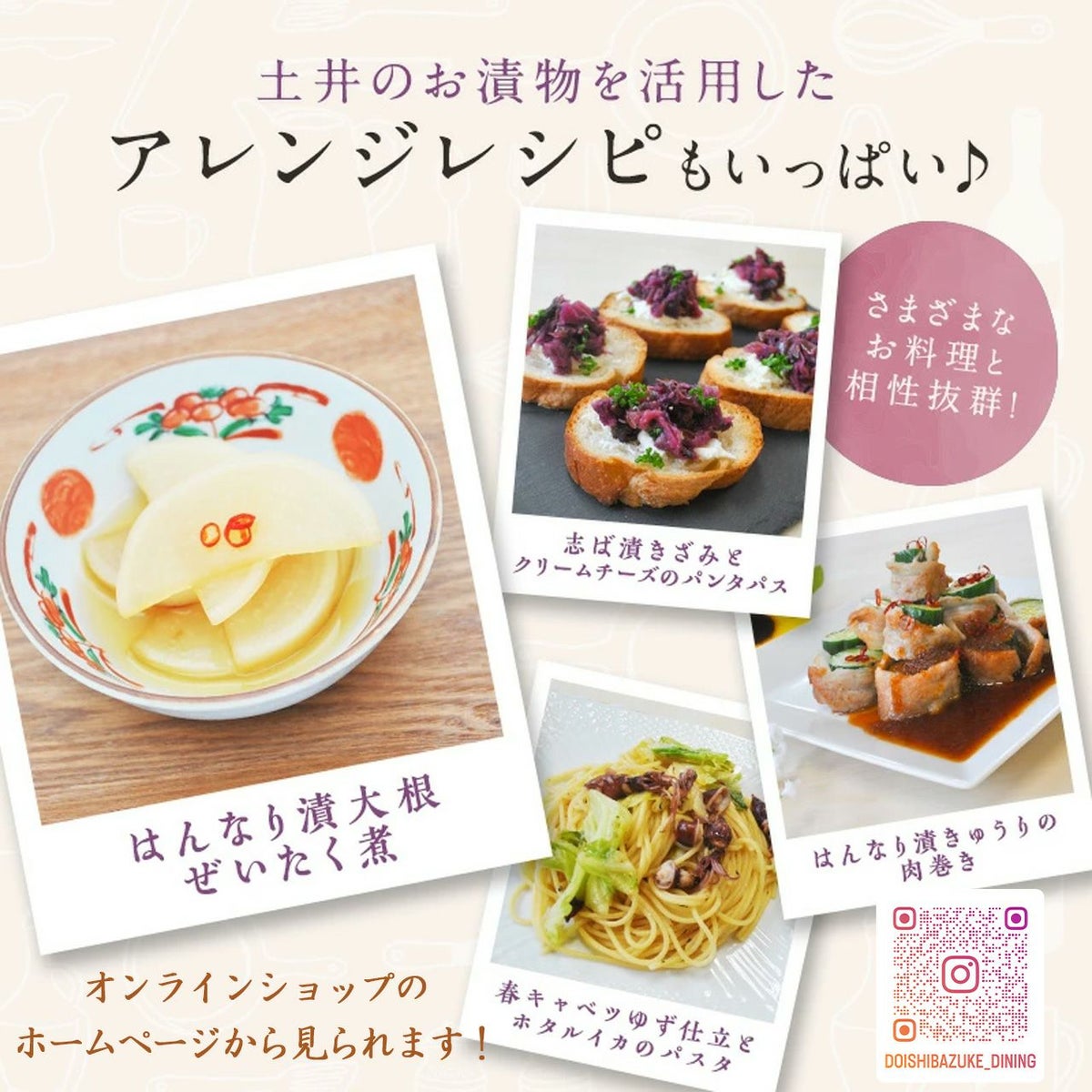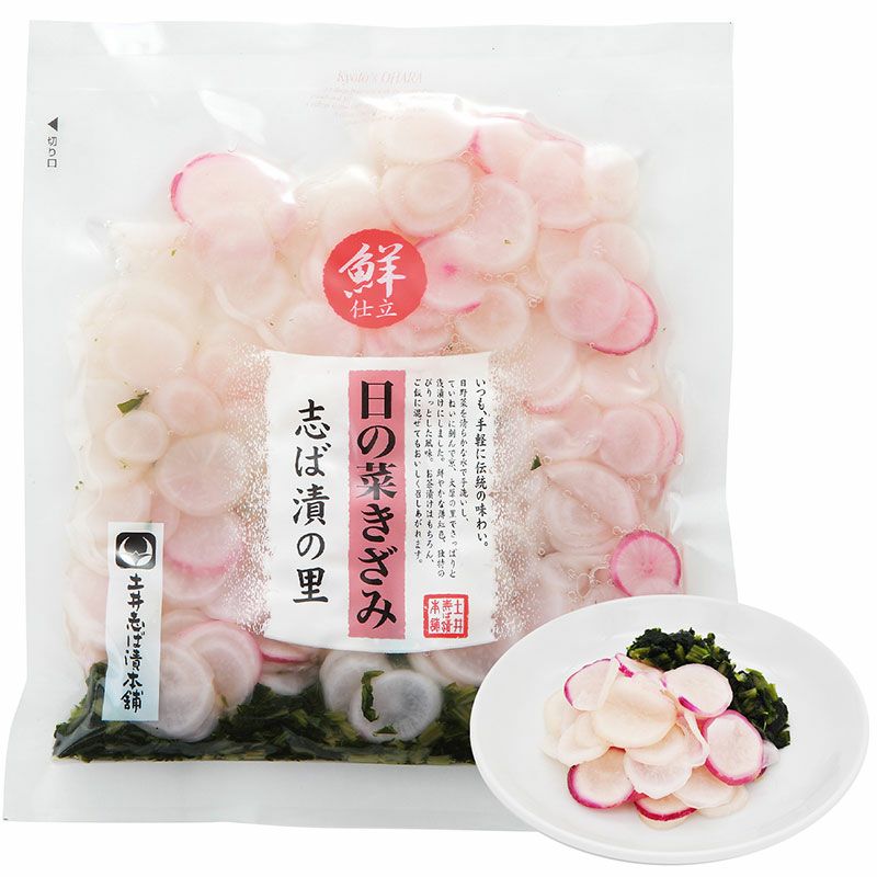 日の菜の持ち味である辛味と、自然の薄紅色を生かして、低塩であっさりと漬けました。日の菜大根の、歯切れの良さも特長です。 少しお醤油を付けていただいても美味しくお召し上がりいただけます。